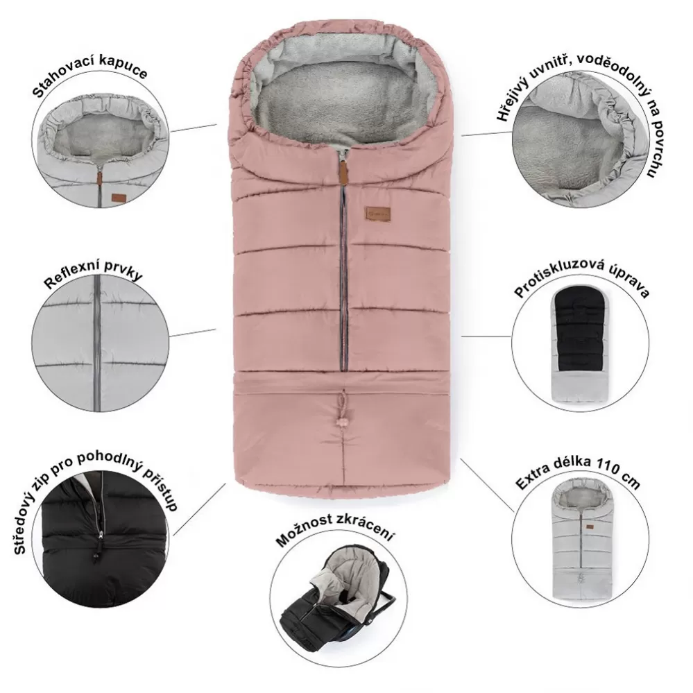 Vlastnosti fusaku: - Zajišťuje pohodlí a teplo v chladných dnech. - Voděodolná úprava ochrání před sněhem a jemným deštěm. - Větruodolný. - Středový zip pro rychlý a snadný přístup k dítěti. - 3v1 - odepnutím nánožníku změníte velikost fusaku na menší, vhodný do hluboké vaničky nebo autosedačky. - Odepínatelná spodní část má vnitřek z lehce udržovatelné látky a je tak praktická i pro obuté nožičky. - Pomocí šňůrek ke stažení kolem hlavičky se vytvoří kapuce, která dokonale chrání dítě vůči větru a chladu. - Protiskluzová úprava fusaku na zadní straně (ABS) předchází klouzání v kočárku. - Fusak je podšitý teplým fleecem, který zahřívá miminko v chladných zimních dnech. - 8 otvorů na zadní straně pro univerzální uchycení v kočárku či autosedačce kterékoliv značky. - Reflexní prvky pro vyšší bezpečnost během procházek. - Fusak je extra dlouhý - až 110 cm. - Lze prát v pračce při teplotě 30 ° C.