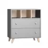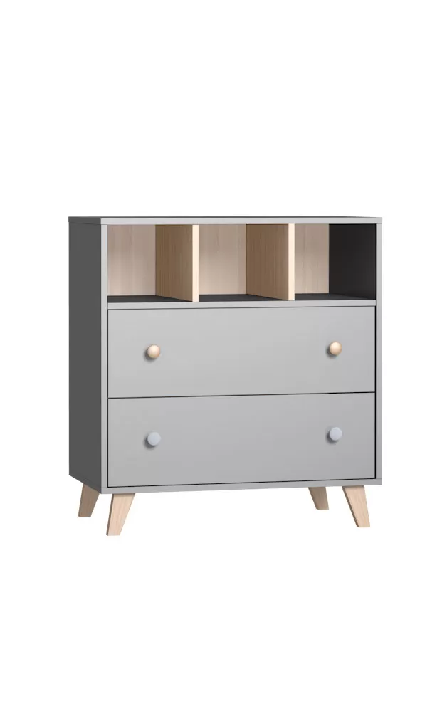 Komoda poskytne dostatek místa na vše potřebné pro Vaše miminko, v horní části otevřená polička pro velmi frekventované potřeby nebo pro věcí, po kterých potřebujete sáhnout ospalá poslepa, níže dva šuplíky chránící věci před prachem. Komoda je optimálně vysoká.