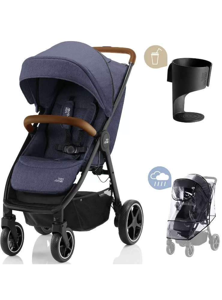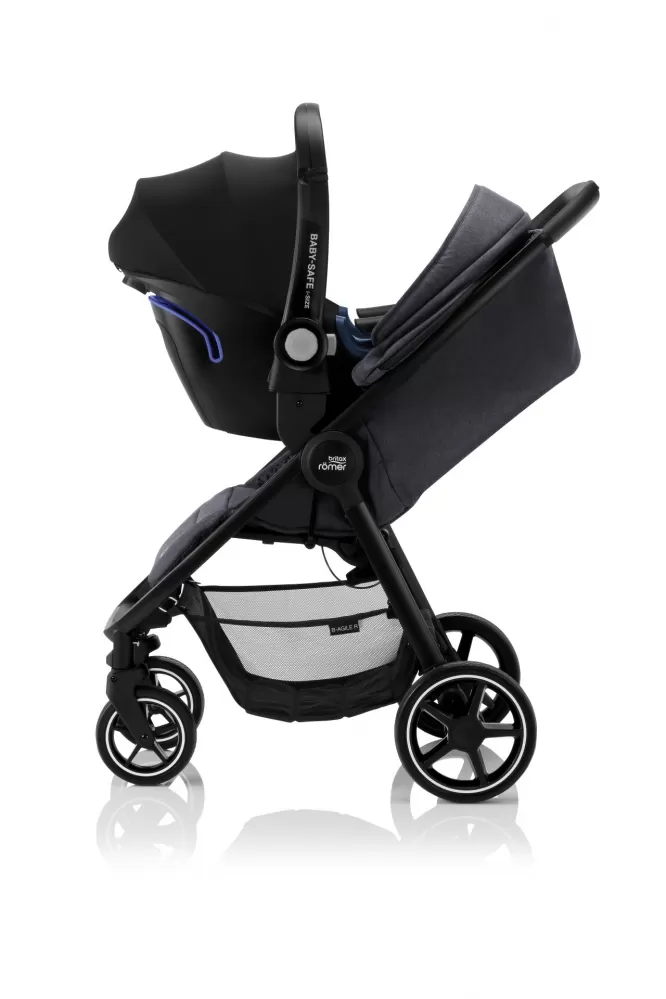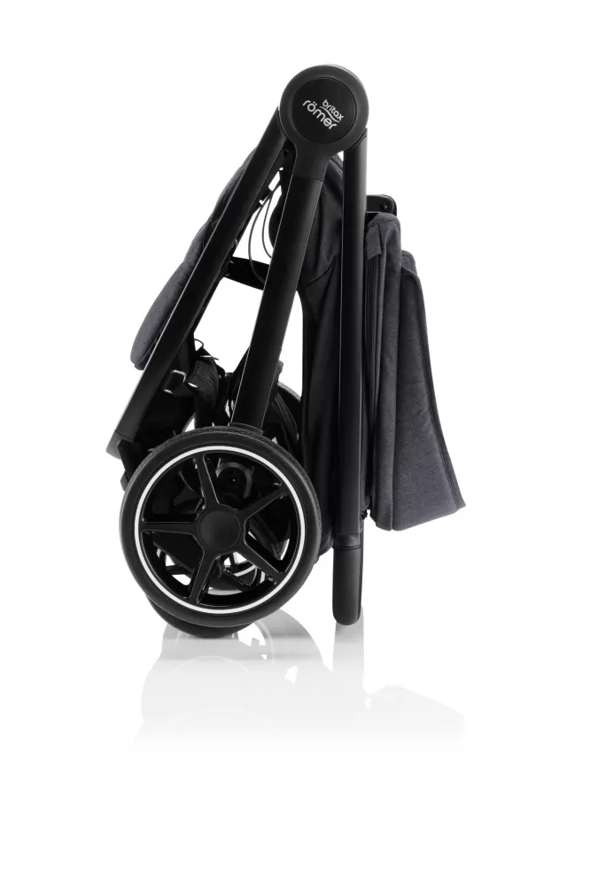 Kočárek B-AGILE R má superštíhlou základnu s šířkou pouhých 56 cm. Složený samostatně stojí a je velmi kompaktní, vejde do většiny automobilů.