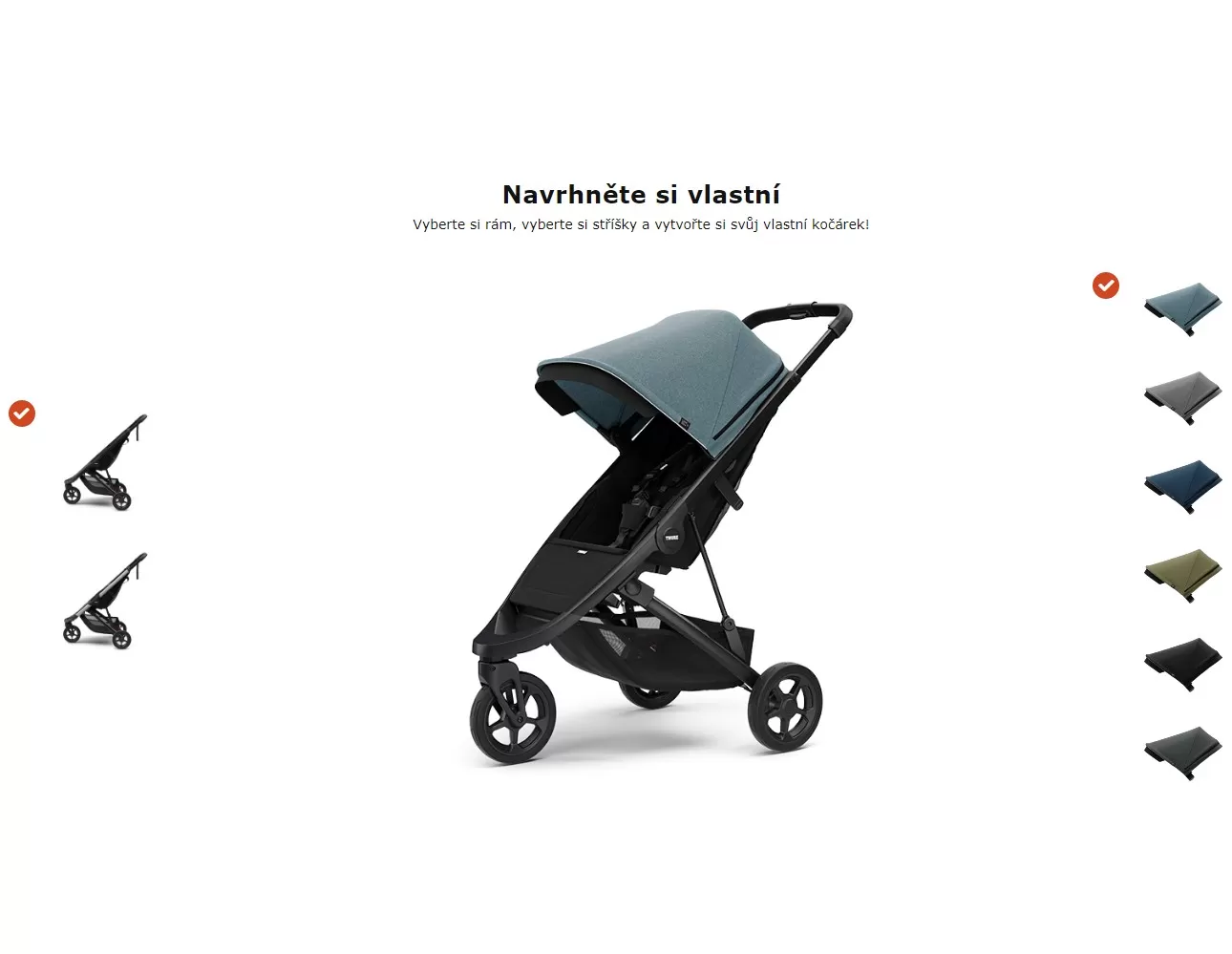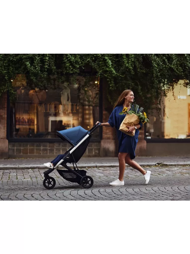 • Nastavitelná stříška s integrovaným prodloužením, které chrání před nízkým sluncem a UV zářením (ochranný faktor 50+) (stříška vybírána samostatně)