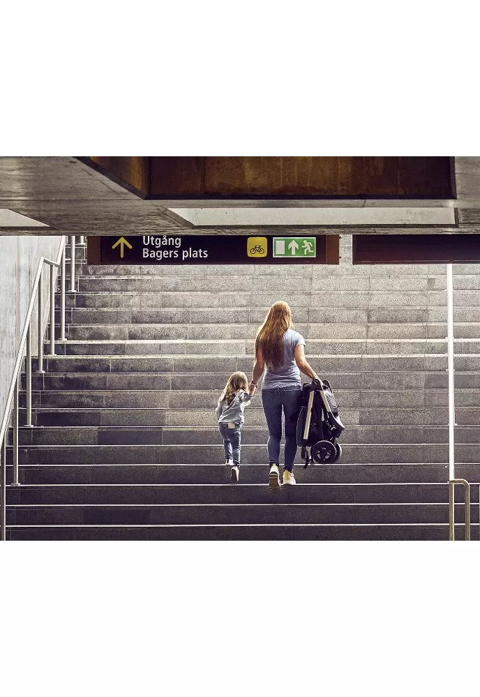 • Nášlapná nožní opěrka umožňuje starším dětem nasednout do kočárku bez pomoci