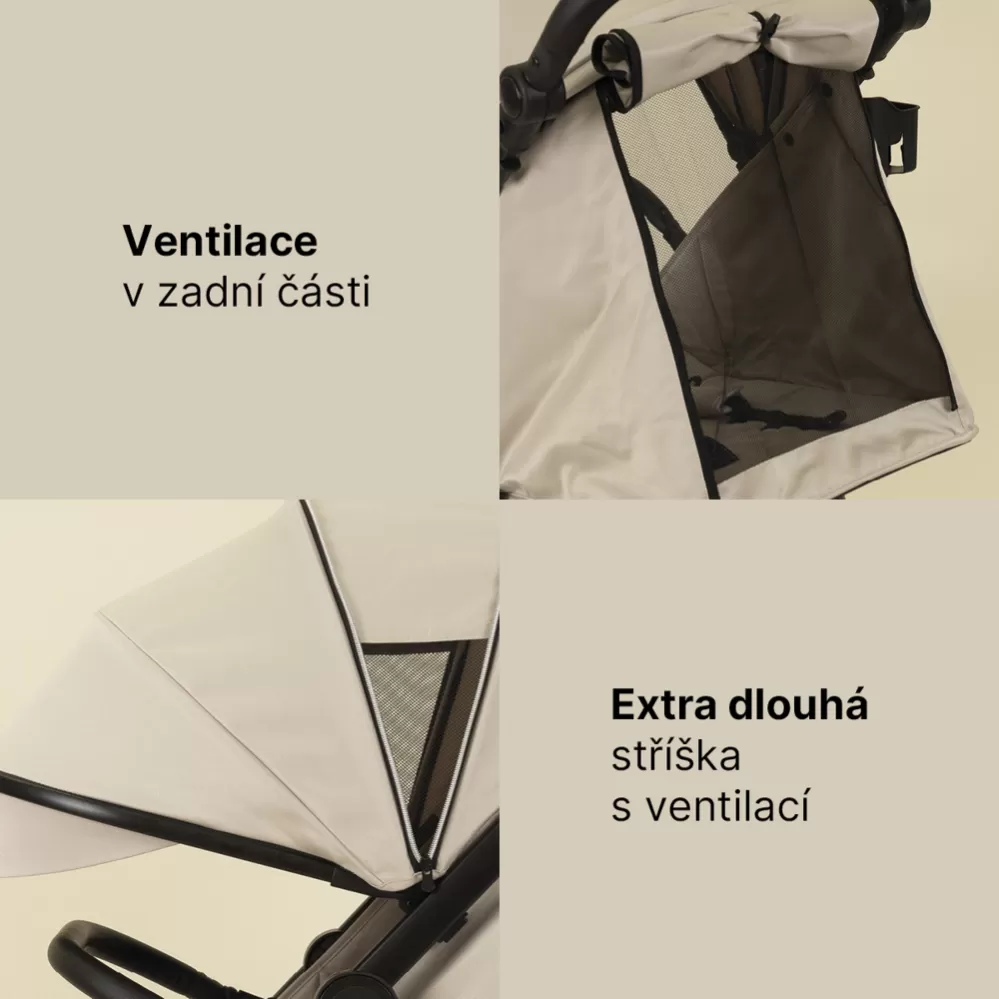 ✔️ Prodloužitelná stříška s větracím okénkem pro lepší ochranu v létě