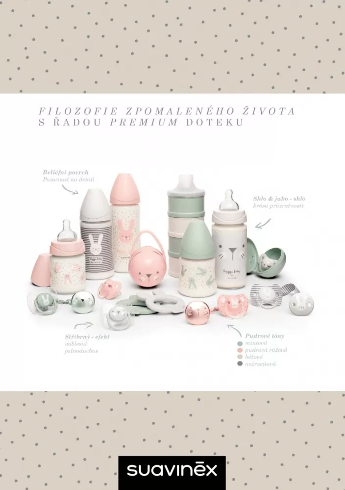 Výrobky Suavinex nejsou jen obyčejné dudlíky, šidítka nebo lahvičky pro miminka. Jedná se o opravdový módní doplněk. Jejich design je propracovaný do posledního detailu a rodiče i děti si výrobky Suavinex okamžitě zamilují. Jsou laděny do neutrálních barev i barev pro holčičky nebo chlapečky. Nechybí ani zlaté nebo stříbrné prvky. Ostatně přesvědčte se o tom sami nabídkou níže.