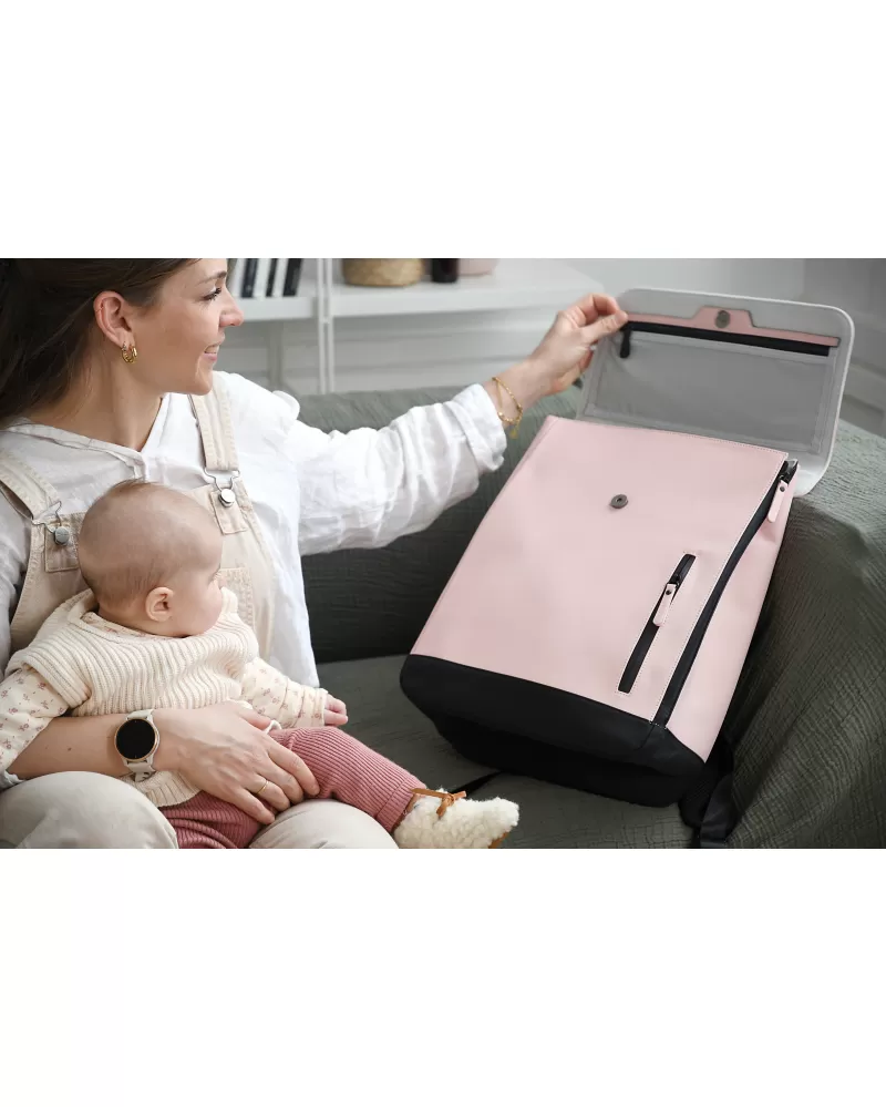Stylový unisex batoh v minimalistickém designu skvěle doplní váš outfit a zároveň nabídne vše, co očekáváte od přebalovací tašky. Je vybaven jedenácti kapsami, včetně tří kapes na zip pro bezpečné uložení vašich cenných drobností. Součástí batohu je přebalovací podložka a vnitřní termoizolační kapsa na nápoj. Kromě horního vstupu s magnetickým uzávěrem batoh nabízí možnost přístupu z boku díky zipu po celé boční straně.