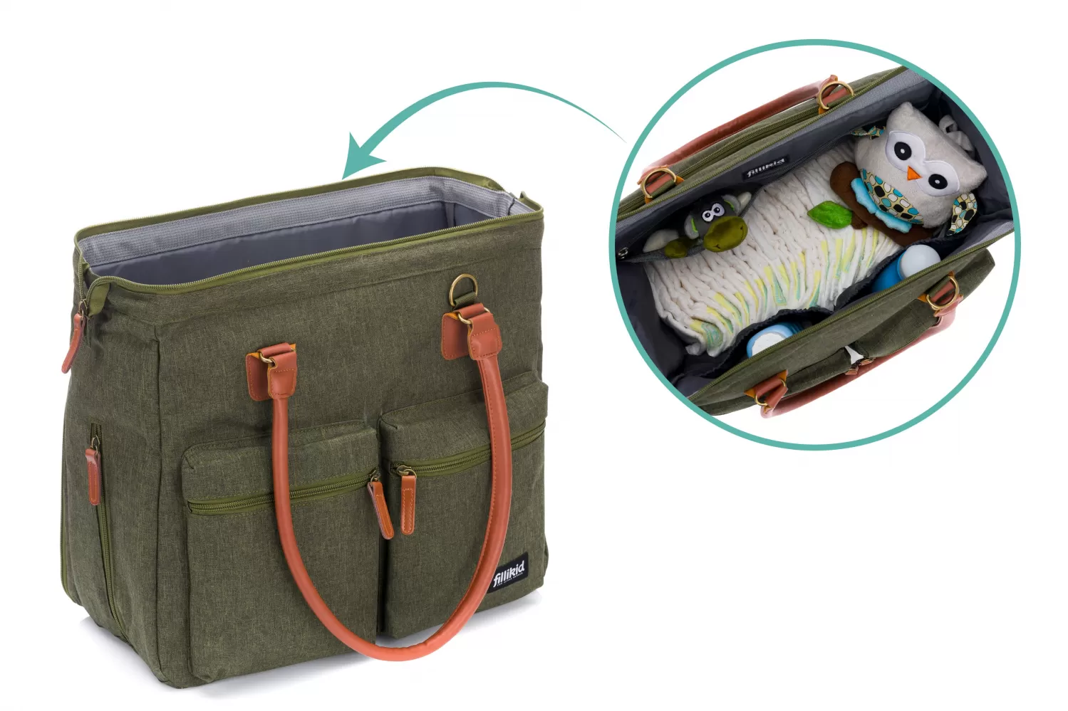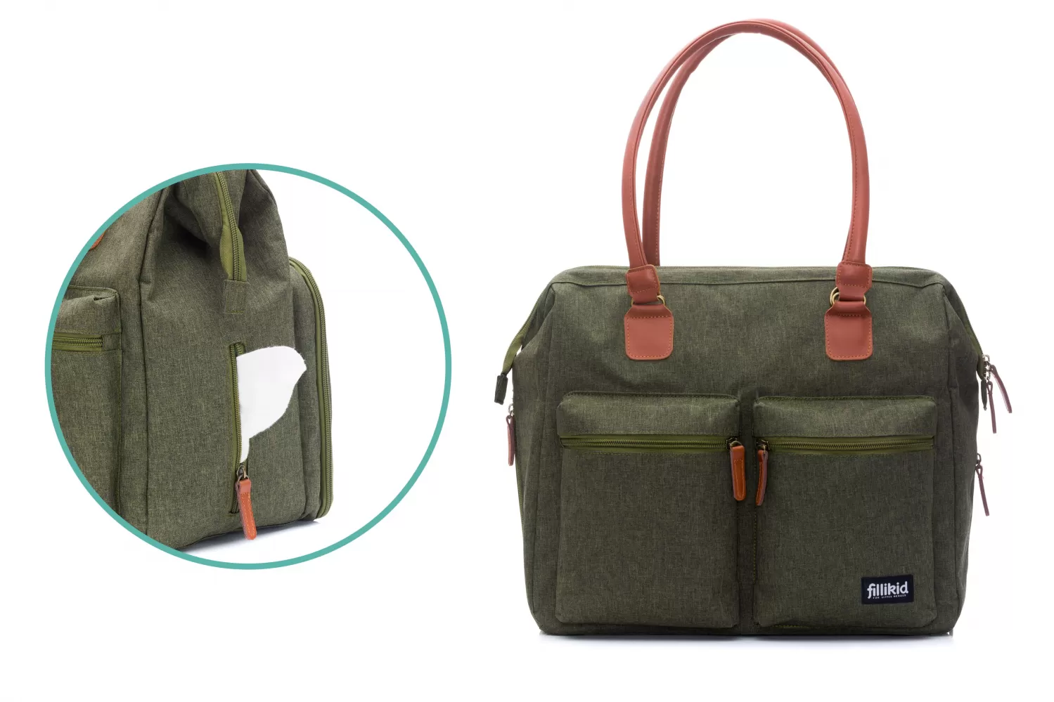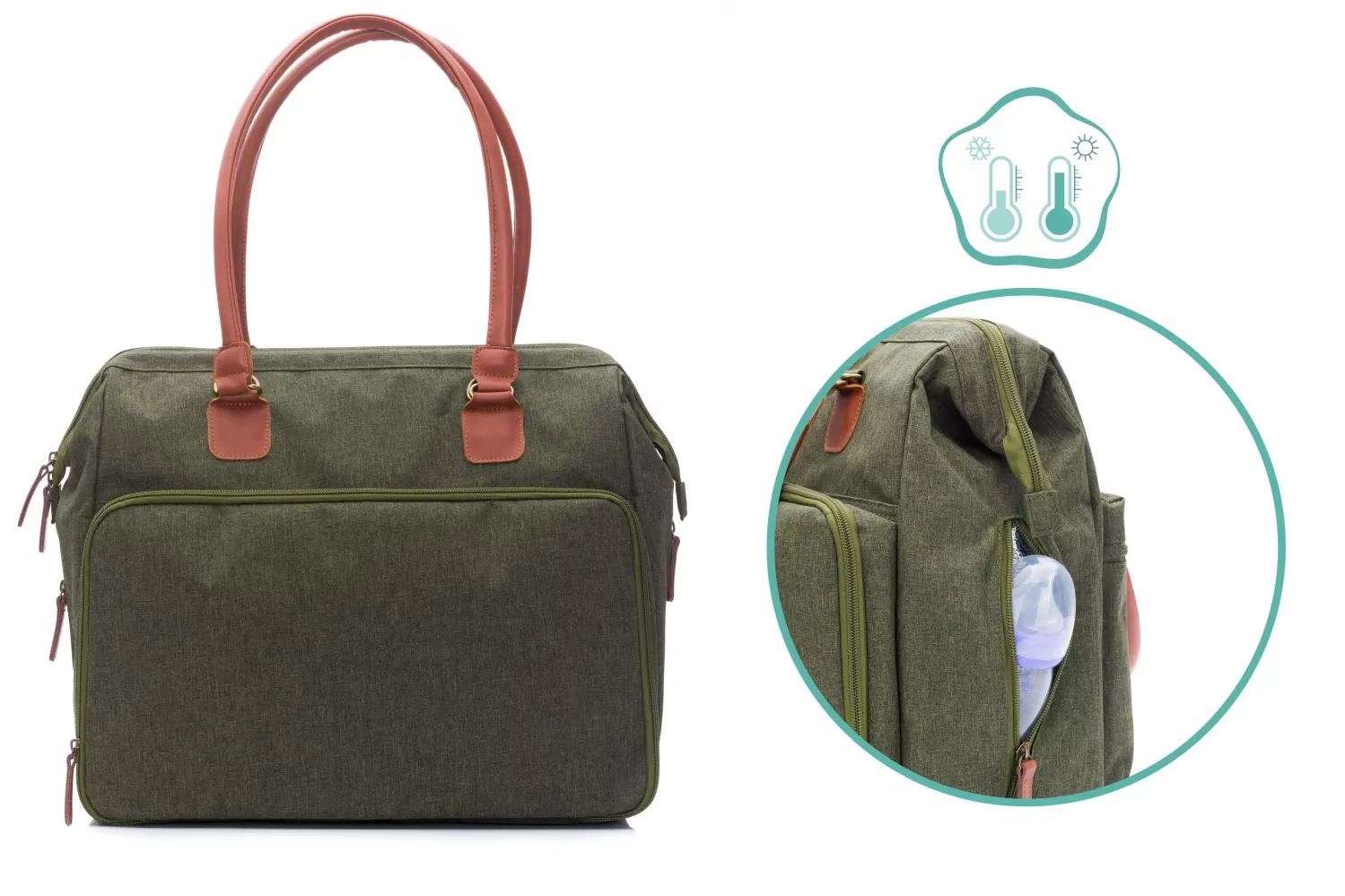 - taška na pleny je vyrobena z odolného polyesteru s držadly z veganské kůže.