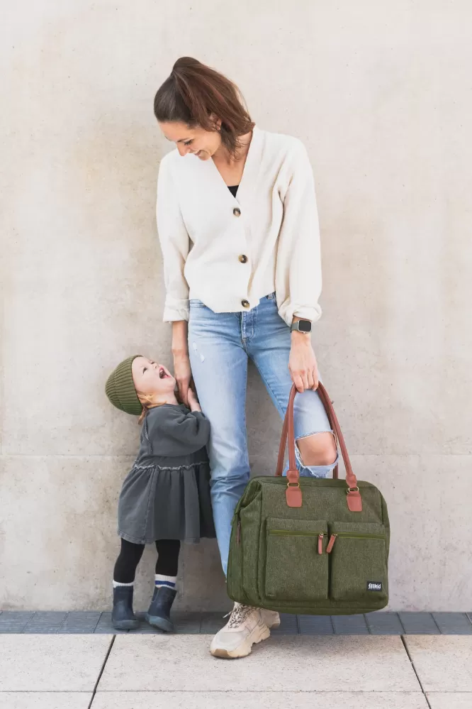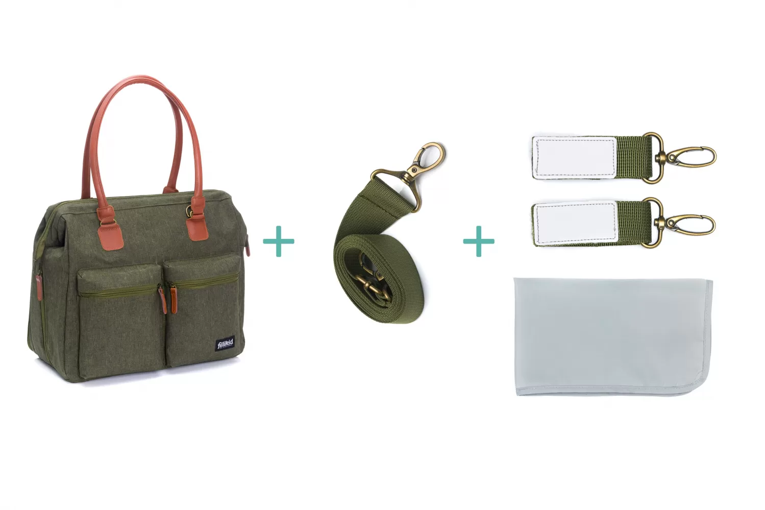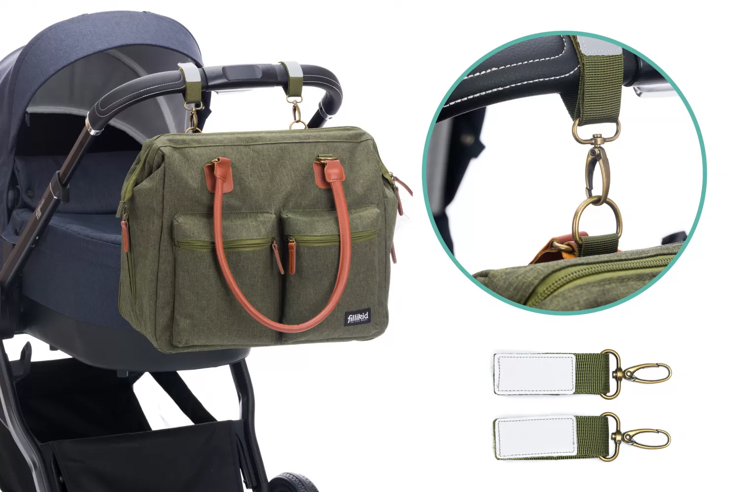 - taška na pleny je vyrobena z odolného polyesteru s držadly z veganské kůže.