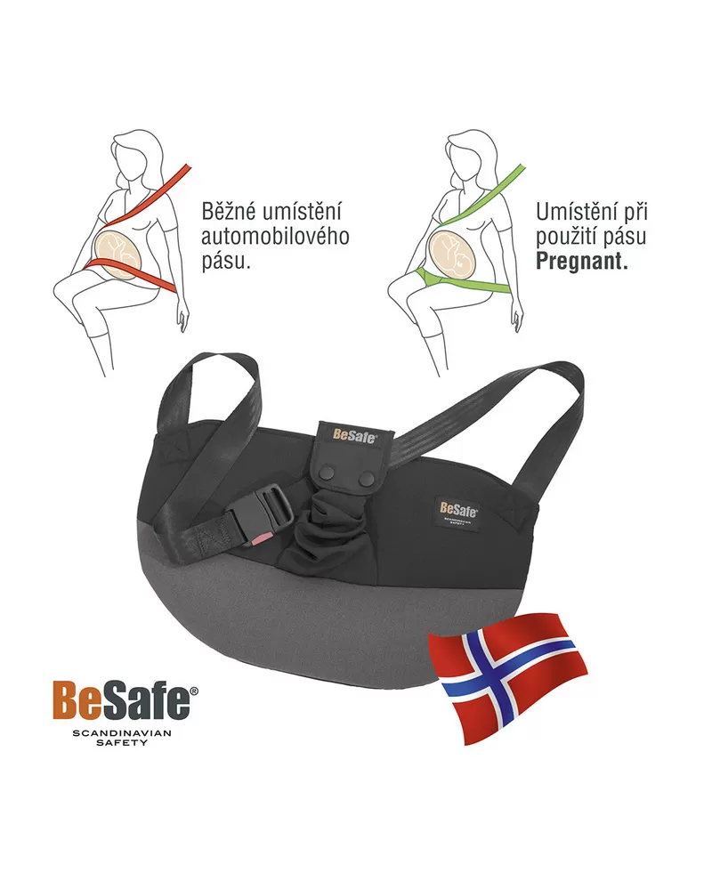 Nejbezpečnější a nejjednodušší způsob, jak chránit sebe a své nenarozené dítě v případě dopravní nehody je používat 3- bodový pás automobilu. Proto je tu iZi Pregnant, přídavná pomůcka pro 3- bodový pás auta, který drží klasický pás mimo oblast měkkých tkání břicha a plodu, i tak je nastávající maminka stále správně připoutaná. Tím chrání zároveň matku i dítě. Tento způsob zajišťuje pohodlnější cestování, bez pocitu tlaku na břicho. iZi Pregnant je doporučován k používání od druhého měsíce těhotenství.