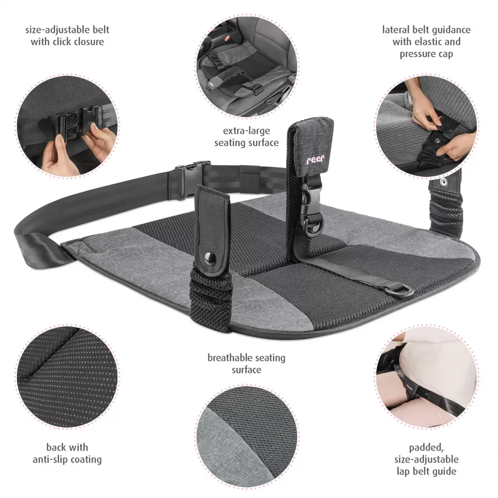- polstrované, nastavitelné vedení pásu auta