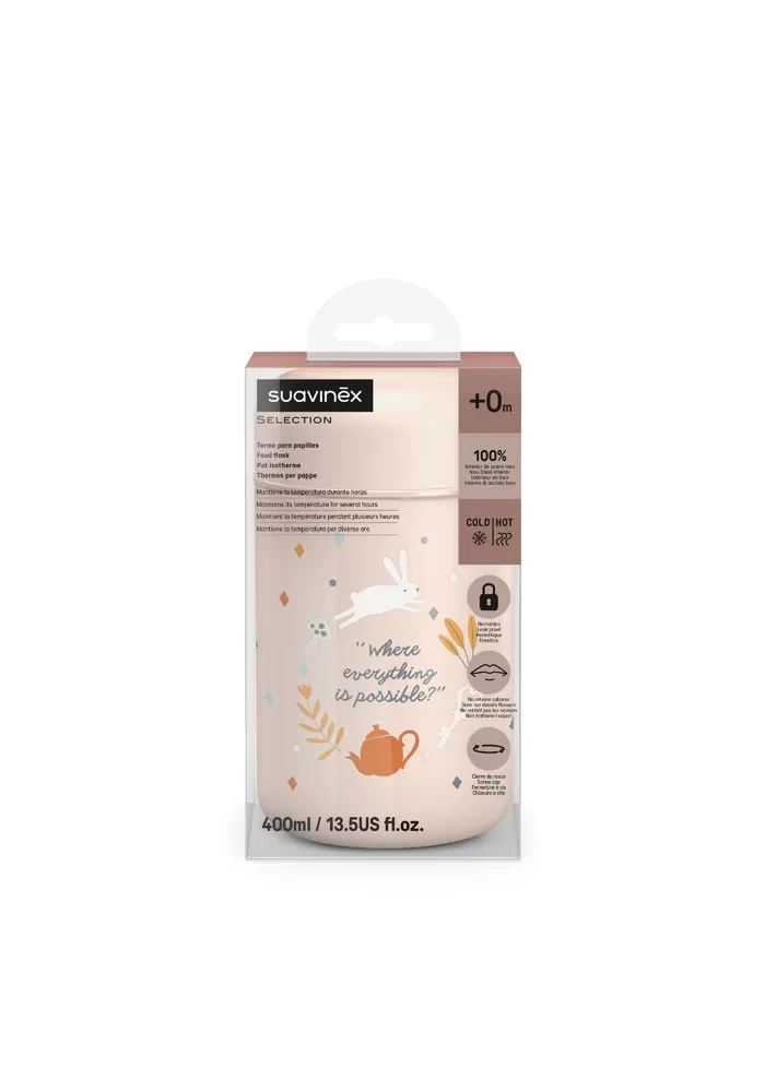 Termoska na příkrmy řady WONDERLAND značky Suavinex umožňuje přepravovat pyré nebo pevné potraviny - uchovává teplotu po dobu až 6 hodiny. Je velkým pomocníkem při výletech s dětmi ven nebo při přípravě příkrmů předem pro noční krmení. Teplota se nepřenáší na povrch nádoby.