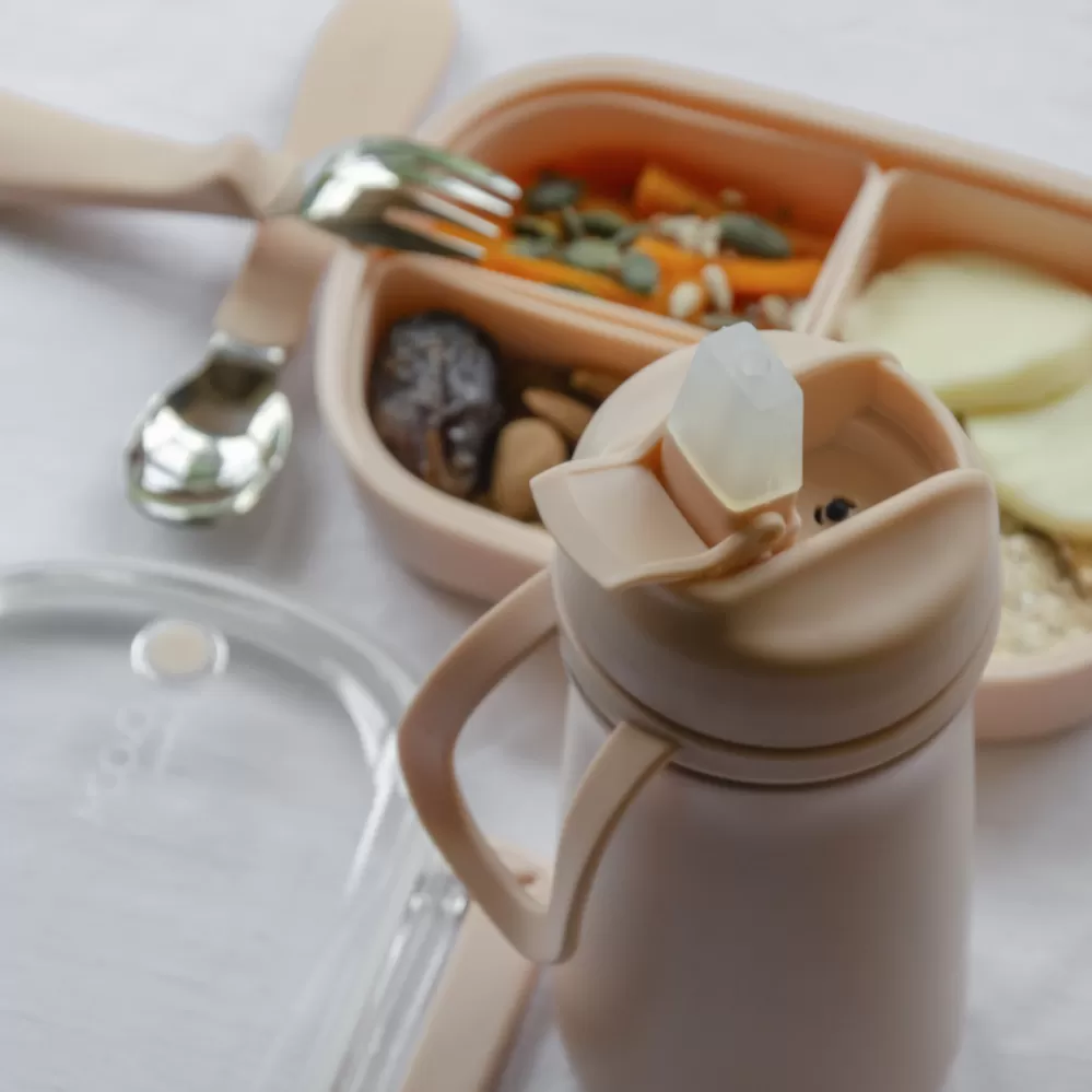 Termoska z nerezové oceli s pítkem, díky tomu je vhodná pro děti již od 6 měsíců. Udrží svůj obsah studený až 24 hodin nebo teplý až 12 hodin. Těsnící víčko udrží tekutinu v termosce a praktické poutko usnadní přenášení a manipulaci s termoskou.