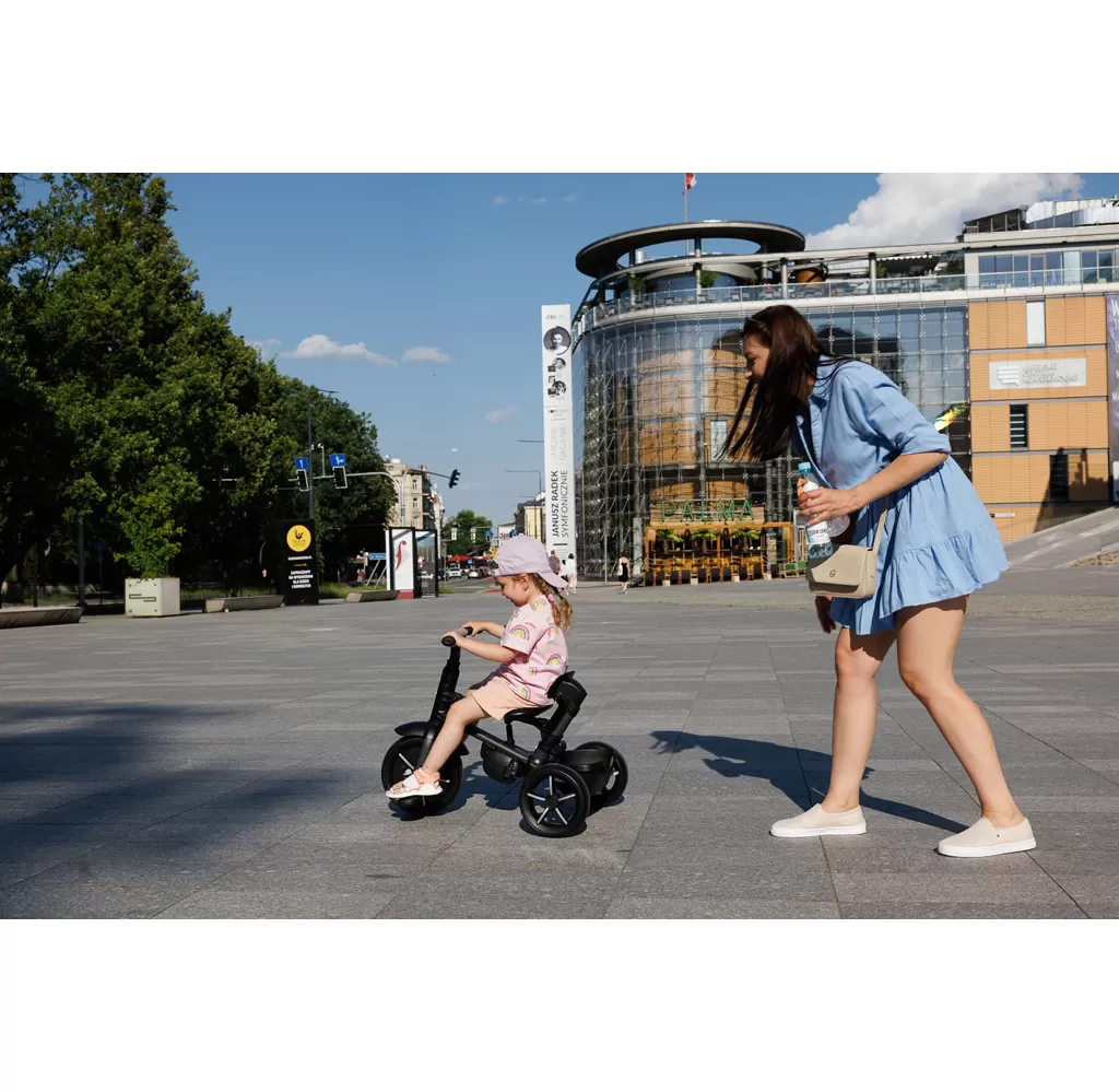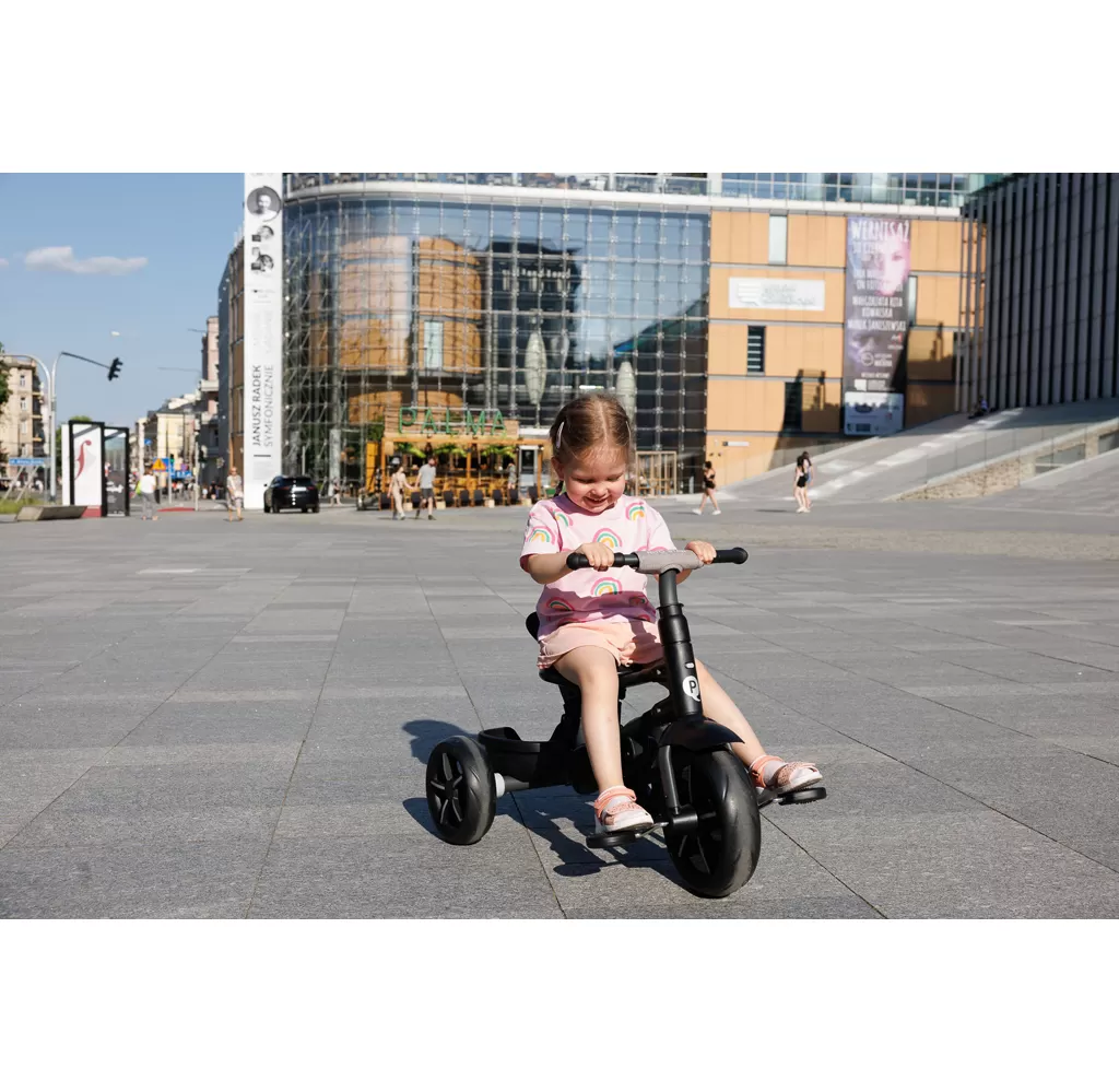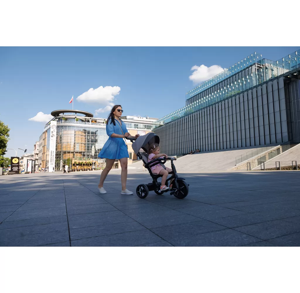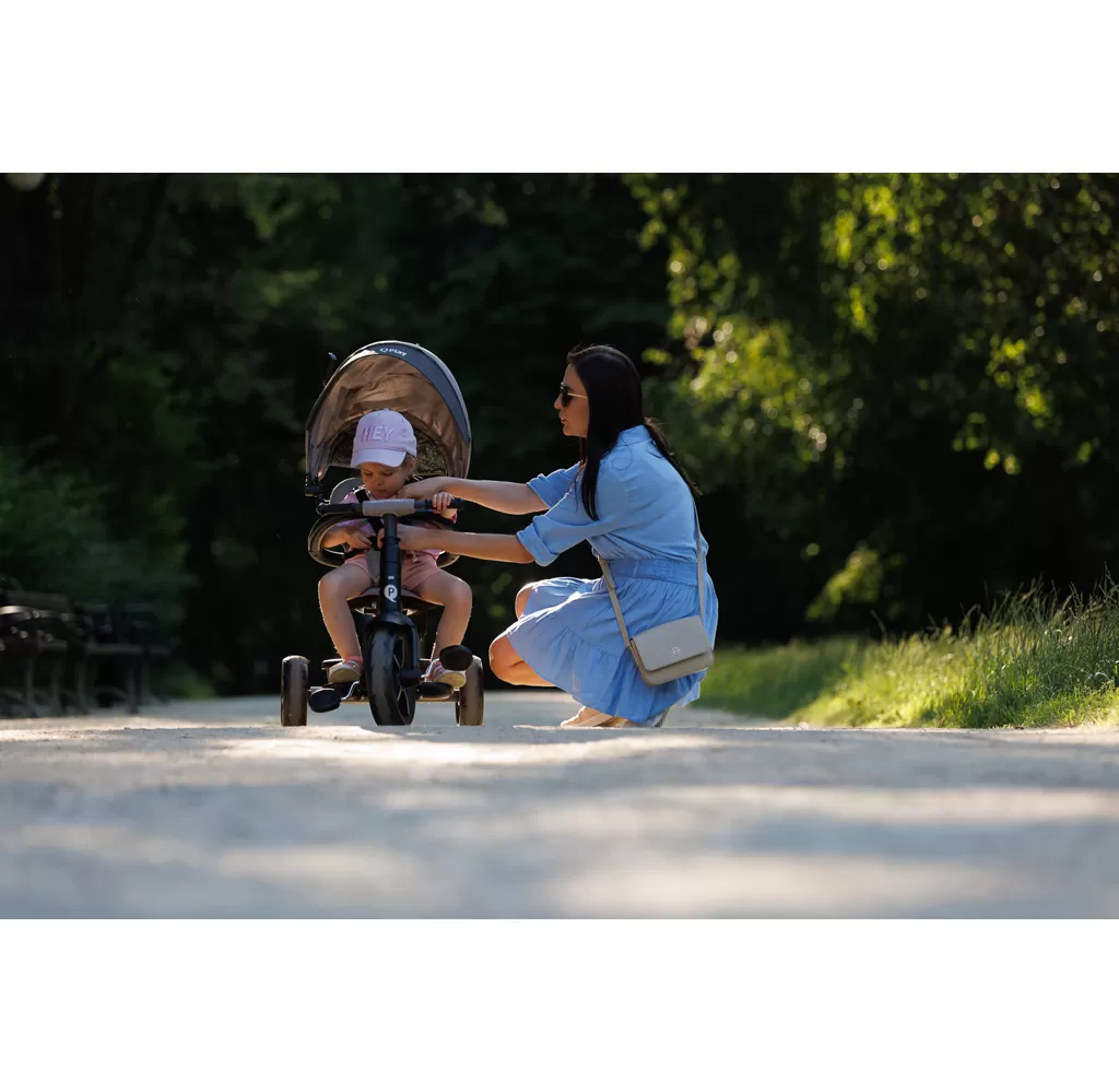 Nová verze QPlay Rito, díky které budou jízdy s vaším děťátkem ještě krásnější a zábavnější! Aktualizovaný rám s černým hliníkovým rámem, nová kola se sportovním designem, sluneční stříška s rozšířením, vhodná pro děti od 10 do 72 měsíců.