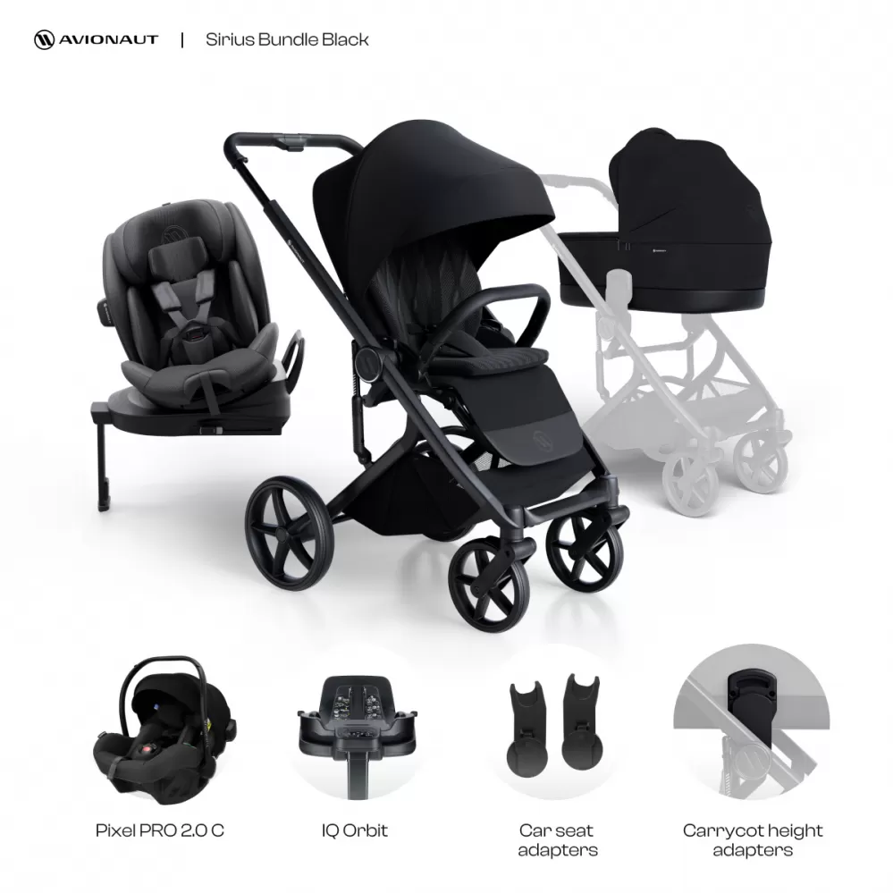 obsahuje: dvojkombinaci Avionaut Sirius & adaptéry na autosedačku ZDARMA & nejlehčí vajíčko na trhu Avionaut PIXEL PRO 2.0 C & otočnou základnu Avionaut IQ Orbit & unikátní pokračovací autosedačku Stardust (nejrychleji rostoucí autosedačka na trhu)