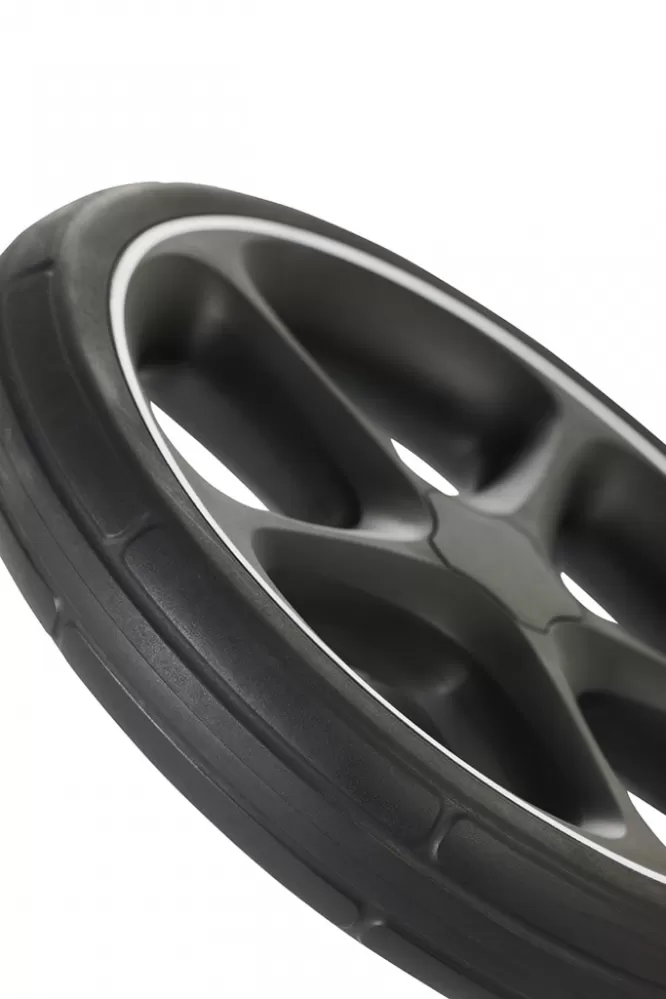 - gumová kola odolná vůči propíchnutí s odpružením a vlastnostmi, které připomínají nafukovací kolečka