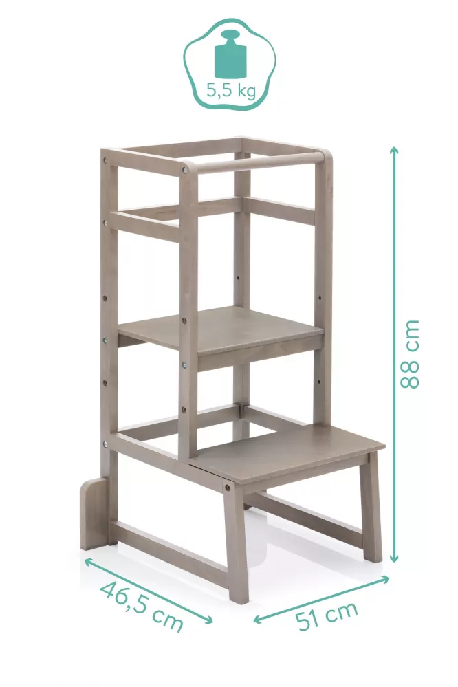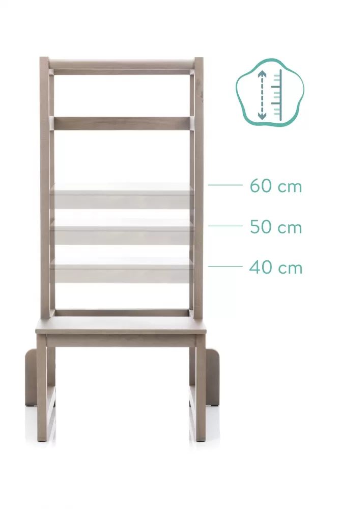 Vaše sluníčko je už velmi zvědavé a chce všude pomáhat nebo se dívat? Pak je výuková věž od Fillikid to pravé pro vás. Je nejen krásná na pohled a svým moderním, ale jednoduchým designem se perfektně hodí do každého bytu, ale je také extrémně stabilní a svými bočními podpěrami a pevnou konstrukcí nabízí vynikající ochranu proti převrácení. A protože naši nejmenší rostou rychle, lze výšku stojanu dokonale přizpůsobit aktuální výšce dítěte. Po zvládnutí cesty nahoru slouží kruhová tyč k přidržení a samozřejmě jako ochrana proti vypadnutí. Vaše sluníčko tak může pomoci všude a ať už jde o vaření, pečení nebo dokonce čištění zubů, tato věž je optimálním pomocníkem, když se nožičky zdají být příliš krátké. Hraní a učení v úrovni očí s rodiči nebo velkými sourozenci pomáhá vašemu dítěti velmi rychle zažít sociální interakce a podporuje jejich dovednosti a pomáhá posilovat jejich vzájemné pouto. A protože Fillikid přikládá velký význam udržitelné výrobě a co nejkratším dopravním trasám, je výuková věž vyrobena ze 100% evropského dřeva z EU. Používají se samozřejmě pouze laky vyrobené a certifikované v Německu.