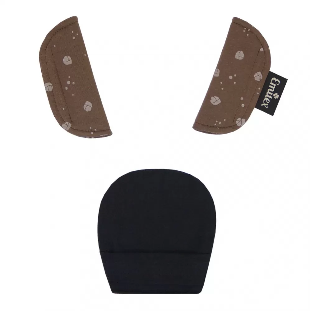 Souprava se skládá ze 3 dílů, většího polstrování pod sponu a polstrování na dva pásy. Je vyrobeno z příjemného, měkkého materiálu. Použitím polstrování se stávají pásy pro dítě příjemně měkké a tvrdá spona přestane dítě tlačit. Použití jak v kočárku, tak v autosedačce. Ramenní polstrování mají suché zipy pro rychlé nasazení, větší polstrování se na sponu autosedačky navléká.