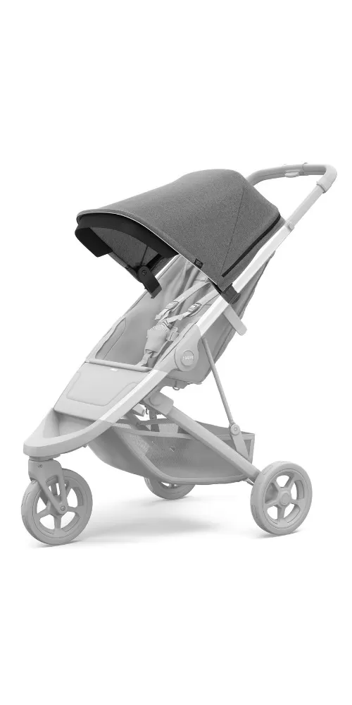 Nastavitelná stříška s integrovaným prodloužením, které chrání před nízkým sluncem a UV zářením (ochranný faktor 50+)